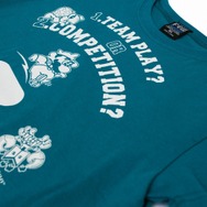 今年で25周年を迎えた『ゼルダの伝説』。エンディングシーンでゼルダ姫とリンクがトライフォースを掲げる姿をクロスステッチで仕上げたTシャツが登場です。ポケットの文字はエンディングのセリフを、バックプリントには「ミンナニハナイショダヨ」の英文にしたテキストメッセージがデザインされています。