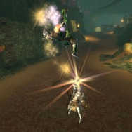“ブラスター”も敵に近付いて近接攻撃を連続ヒットさせることでフィニッシュ攻撃につながります。フィニッシュは空中に飛びあがり、複数のアルマの光から撃ち出される一斉砲火で敵に大ダメージを与えます。
