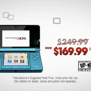 8月12日より北米でも実施されたニンテンドー3DSの値下げ。任天堂オブアメリカは、値下げに合わせて2種類の新CMを公開しました。CMでは『ゼルダの伝説~時のオカリナ3D』『スターフォックス64 3D』『スーパーマリオ3Dランド』『マリオカート7』といった発売中~年内に登場予定の注目タイトルを紹介。最後に大幅な値下げを告知するというもの。北米では249.99ドルから169.99ドルへの値下げとなっています。