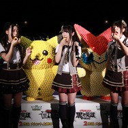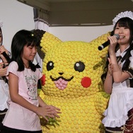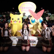 会場には大のポケモンファンと言うSKE48の高柳明音さん、佐藤聖羅さん、石田安奈さんの3人が駆け付け、劇中に登場するポケモン・ビクティニが大好物のマカロンで作られたピカチュウとビクティニも登場しました。
