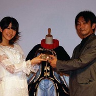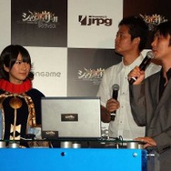 会場には開発を担当したイメージエポックの御影良衛社長をはじめ、関係者が集結。オフィシャルナビゲーターに就任した「はるきゃん」ことAKB48の石田晴香さんと、主題歌『Crest of Knights』を歌う彩音さんも応援にかけつけました。