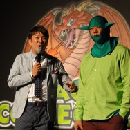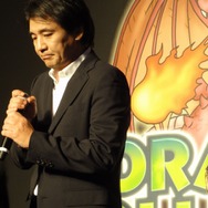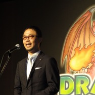 コナミデジタルエンタテイメント執行役員の上原和彦氏の挨拶を皮切りに、『ドラコレ』エグゼクティブプロプロデューサーの早川英樹氏が登場。“GREE Platform Award 2010総合大賞”“GREE Platform 2011年 上半期優秀アプリ表彰 殿堂入り”の2つの賞を受賞した喜びと共に、総合ランキング44週連続1位(2011年8月18日現在)という状況に感銘を受けている様子でした。次のステップへと題した3つの企画はいずれも豪華なものとなっています。