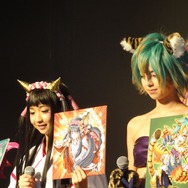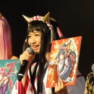 司会者よりモンスターカード「九尾の狐」が舌をペロッと出していることから、制作者内では「九尾の狐」がローラと呼ばれていることが明かされます。話を聞いて、舌をペロッと出すいつものポーズで大喜びのローラさん。それを見て羨ましく思った木下さんがトロールのコスプレをする一幕も・・・。