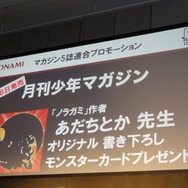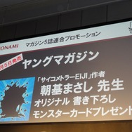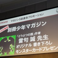 最後の重大発表を飾るため登場したのは「週間少年マガジン」編集長の森田浩章氏。8月31日発売号の「週間少年マガジン」で『ドラコレ』を題材とした「ドラゴンコレクション 竜を述べるもの」の連載が始まることが告げられました。KONAMI原案・監修のもと、金城宗幸氏のシナリオと芝野郷太氏の作画にて展開されます。