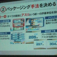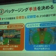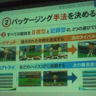 パッケージング手法では「統一する」ということが大きなテーマとなりました。構造の面でもありましたが各スポーツは大きく異なるルールを持ちます。しかしゲームでは全て「3ミス制ルール」で統一、「アスリ」という統一の評価基準を設けました。また、スポーツは遊び方で「目標型」と「記録型」に分け、画面上の表示する物も統一を図りました。