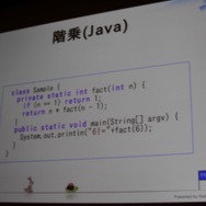 「シンプルな階乗の計算だけでもJavaやC++と比べるとRubyはとても簡単に書けます。JavaにはJavaの都合があると言ってしまえばそれだけですが、書かないとコンパイラが文句を言うから面倒な記述をするわけです。しかし我々はコンパイラの為に働いているわけじゃないですよね」