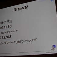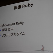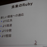 しかし、まつもと氏は「転石苔生さず」の精神を今後も貫きたいと言います。「今後もムーアの法則は続き、プログラミング言語ができることは増えていきます」。その一方、軽量Rubyの開発にも取り組んでいるとのこと。そして「RiteVM」と呼ばれる組み込み機器向けの環境も用意。あらゆる分野でRubyが利用できる環境を構築していくとのこと。