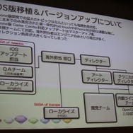 iOS版は日本で制作を行ったものの、処理負荷対策に苦労があったそうです。また、北米のみで発売された第一世代iPod touch/iPhone 3G対応は大変だったようです。また、iOSはGame Centerに対応するためのアップデートを実施しましたが、日本側で対応ができずセガオブアメリカが制作し、それをローカライズするという形になったようです。これは非常にディレクション負荷が高く、反省点として挙げられていました。