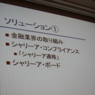 斎藤氏が参考になるモデルとして紹介したのは金融業界の手法です。イスラム法では貸付で利子を取ることは禁止されています。しかしこれは金融を大きく制限します。直接的に利子ではなくとも、それが実質的には利子と判断されてしまう事もあります。そうした事を防ぐため、各銀行はシャリーア・コンプライアンスとしてシャリーア・ボードという法学者で構成される判定組織を設けているそうです。