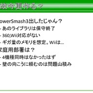 では、なぜ新規に作るのかという部分では、『パワースマッシュ3』のプログラムコードや、そのほかの資産を利用するという部分でも、当時、平山氏の手に届くものは、アーケードのライブラリのみだったこともあり、さらにWiiでの開発を織り交ぜると難しくなる部分が発生するからだそうです。