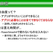 とはいえ、アプリケーション部分でも自由度が必要な個所もあります。そのため、アプリがやりたいことができることを網羅すべきこともあったそうですが、今回は時間の制約もあったため、『パワースマッシュ4』で使わないものは、SegaLib内に入れていないといったことも語られていました。