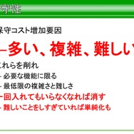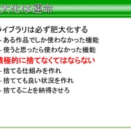 これは保守性という面からも言えることで、機能を増やしてしまうと、多い、複雑、難しいといった弊害が発生するといったほか、「ちょっと作ってみて」と言われて作った機能であっても必要がなければライブラリから削除するといったことや、必要な機能と最低限の複雑さと難しさであれば、いずれは単純化するといったことが挙げられていました。