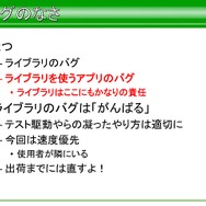 ではライブラリの更新作業はどうだったかというと、ライブラリにおいてはバグのなさが重要で、ライブラリを使うアプリのバグはライブラリの責任であると語っています。ですので、バグが発生した場合、責任を持ってライブラリのバグを修正、今回は速度優先で出荷までには直すといった部分もあったため、チーム内で隣の席のスタッフとの連携を取り、フットワークを軽くして行ったそうです。