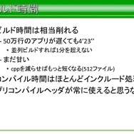 結果として、一番遅いハードウェア用のコードで50万行あったとしても遅くても4分23秒でビルドが完了することができたと語られています。とはいえ、平山氏は現状には満足しておらず、パワースマッシュでは512ファイルあったC++で書いたコードを減らせすことでより短くなるとも語っていました。
