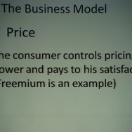 最後に和田氏が示したのがビジネスモデルにおけるドライバです。ゲーム業界のビジネスモデルは、100円を払ってプレイする「従量課金」で始まりましたが、家庭用ゲーム機で最初にゲームソフトの価格を払ってプレイする「定額課金」に移りました。その一方で中古、廉価版という価格調整機能も生まれました。