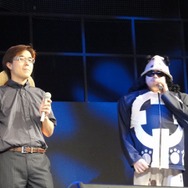 最初に登場したのは、バーソロミュー・くま!?・・・に扮したバンダイナムコゲームス「ONE PIECE」ゲームプロデュサーの中島光司氏。そして、ルフィのトレードマークである麦わら帽子を身に着けて登場したのは、『ワンピース 海賊無双』のプローデューサーでもあるコーエーテクモゲームスの鯉沼久史氏です。