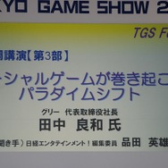 今年は3部構成となった東京ゲームショウ(TGS)の基調講演。そのトリをつとめたのが、SNSサービス「GREE(グリー)」を展開する、同社の田中良和社長です。