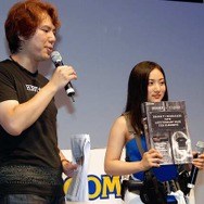 続いてジル・バレンタインのコスプレ姿で紗綾さんが登場。「ジルのコスプレができるなんて、夢みたい」と語りました。ちなみに、最も好きなキャラクターはクレアで、「顔はかわいいのに強いから」と即答。自宅で弟と『バイオハザード ダークサイド・クロニクルズ』(Wii)を遊ぶことが多いが、その時もクレアを使うと話していました。