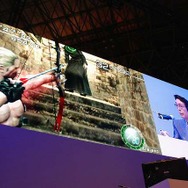 その後、Wii版『4』のザ・マーセナリーズモードで、スコアアタックが披露されました。鈴木さんのベストスコアは19万5570点とのことで、会場でも大勢のファンに見守られながら、華麗な腕を披露。アーチェリーによる遠距離射撃と、的確なヘッドショット、グレネードなどを組み合わせ、17万4340点を記録。会場を大いに沸かせました。
