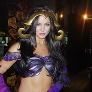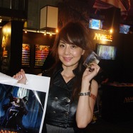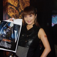 そんなMTGのブースにお邪魔すると、出迎えてくれたのがセクシーなコスプレイヤーでした。MTGの世界から抜け出してきたかのような出で立ちで注目を集めていました。