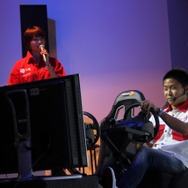 イベントには元F1ドライバーの鈴木亜久里氏と、現役スーパーGTドライバーの井口卓人氏そして、女子カート部の塚本奈々美氏が登場。最新作を紹介しながら、ゲームに挑戦しました。