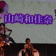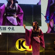 大きな歓声と共に登場したのは『真・三國無双6』の大人気キャラ、孫尚香のコスチュームを纏ったかづきさん。線の細い体型と相まって非常に高い再現度を披露。あざといまでにゲームキャラクターの可愛さを表現していた。これには小野坂は釘付けとなり、山崎さんから「こら!」と目線を窘められるというワンシーンも。
