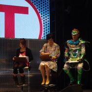 Tenさんは『NINJA GAIDEN』シリーズの主人公、リュウ・ハヤブサ姿で登場。コスチュームだけでなく、キレのある動きとゲームそっくりなポーズで大喝采。「日本人には無理だと思ってました」とまでクリエイターの早矢仕さんが言うそのコスチューム姿は実に似合っていた。さらには、書類選考時には『NINJA GAIDEN Σ2』のコスチュームだったものが、TGSに向けて『NINJA GAIDEN 3』仕様に鉢金がアップデートまでされていた、と一味違うコダワリまで魅せてくれました。