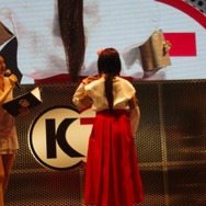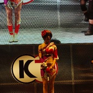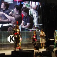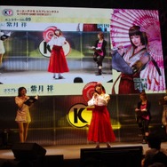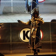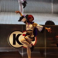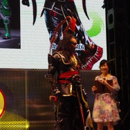 『戦国無双』の阿国に扮する月祥さんはガッチリしたリュウとコントラストが鮮やかなしっとりした衣装で登場。ゲーム内の揺れながら歩くモーションを我が物と完全に表現するだけでなく、後ろに垂らした長い髪も地毛という素晴らしい熱意。写真では動作を見せられないのが惜しい、実に見事な演技だった。関西人として、京言葉を使う阿国にはシンパシーを感じるそうで、京ことばで阿国役の山崎さん(中の人)と阿国をコスプレしている月祥さん(外の人)が挨拶を交わすというレアな交流もあった。