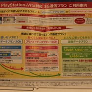 NTTドコモのブースでは、同社の3G回線に対応したPlayStation Vitaも展示されていました。12月17日に同時発売される『みんなのゴルフ』をプレイできたほか、データプランについて説明がされていました。