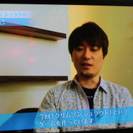 「レベルファイブのゲームディレクター松野泰己です。今回『CRIMSON SHROUD』というゲームを作っています。RPGの原点、デーブルトークRPG風のアドベンチャーゲームを作っています。テーブルトークというとゲームマスターが物語を語り、プレイヤーの皆さんが提示される選択肢を選んで、時にはサイコロを使いながら遊ぶ。これを3DSでシンプル、コンパクトにまとめてみました。今、スタッフ一堂頑張って作っています。楽しみにしていてください。」
