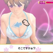 ここで実際に実機でプレイしながら解説。「マッサージ」では、疲れたメイドさんをマッサージして元気にします。元気になるツボを探し、うまくタッチすると元気に。隠されたツボも用意されており、ここを突くと普段見れない反応が見れたりします。ツボを見つけるとボタン連打で元気を回復。基本これを繰り返していきますが、胸など触ってはいけない所などを触ったりすると「お兄ちゃんのバカァ!」・・・とビンタされてしまいますので要注意です。