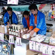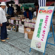 また、みなみちゃん、まっちゃんのキャラクターをコラボした特産品ブースも登場。商店街には一足早く、萌えキャラによる観光アピールを打ち出した萩市須佐町から、イカ釣り漁師娘「海野みこと」も駆けつけ、特産品をアピールしていました。萌えキャラならぬ「藻えキャラ」の活躍に今後とも期待大です。