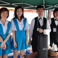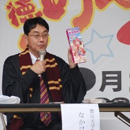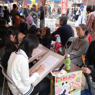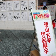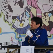 ステージイベントの一環で行われたパネルディスカッションでは、実行委員長を務めた周南青年会議所の今治総一郎さんと、徳山大学教授のマンガ家なかはらかぜさん、特任教授の原田一記さんが、萌えと町おこしについて熱く語り合いました。こんなふうに、本イベントは行政(周南市)と大学(徳山大学、YICキャリアデザイン専門学校)、そして産業(地元特産品)の産学官連携で進んだようです。