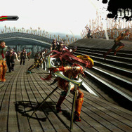 また、ゲーム中最初に遭遇する巨大なボス「ヘカトンケイル」の姿も公開されました。ヘカトンケイルはゾンビの集合体で、火球のようなものを吐き出すこともできるという厄介な相手。一本ずつ相手の腕を切り落としていき、神楽がボスの血を吸収することで、新たな技を入手することができます。