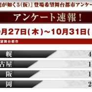 セガは、現在制作中の『龍が如く5(仮)』に登場する舞台都市アンケートの途中結果を発表しました。