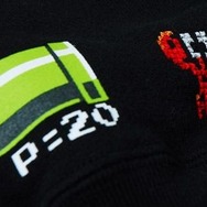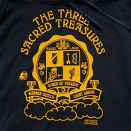 「パルテナの鏡パーカー」は、『光神話 パルテナの鏡』の主人公・ピット君が集める「三種の神器」をフロントプリントに配置。バックプリントには三種の神器を装備したピット君がクロスステッチで表現。さらに「ゼルダカレッジパーカー」と同じく右袖にランダムプリントを新たに追加。8種類のキャラクターの中からランダムで1キャラプリントされます。