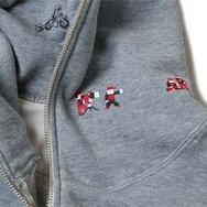 「ゼルダカレッジパーカー」は、初代『ゼルダの伝説』に登場する代表的なアイテムやシーンを配置した「ゼルダカレッジ」シリーズをKOGパーカーにアレンジ。フロッキープリントを水性染み込みプリントに変更、リンクはクロスステッチで表現されます。また、新たに右袖にランダムプリントが追加。全16種類の敵キャラの中から1キャラプリントされます。