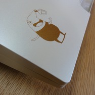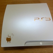 本体左下には金色の箔押しでナミダの妖精シズクがいます。この妖精はオリバーをニノ国へ導く重要なキャラクターなんですよ。PS3のロゴはラメのないゴールド。さて、ここで注目したいのが起動スイッチがある部分です。この部分には、たっぷりとした金色のラメがギッシリあしらわれていて、ゲーム機とは思えないような仕様になっているのでぜひ実際に目で見ていただきたい。