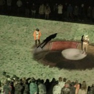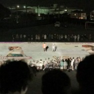 撮影は、多くの仲間が集まる場所の象徴である学校を使って行われ、PS Vitaのゲーム画面を校庭に投影した30m×16.8mの巨大スクリーンが作り出されると、瑛太さん、松田さんともに大興奮&大感動。また、2人ともあまり訪れる機会がない学校に懐かしんでいる様子でもありました。巨大スクリーンには、リアルタイムでゲームのプレイシーンが映し出されます。