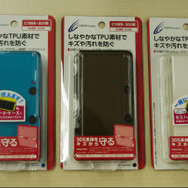 こちらも3DSを保護するプロテクターですが、硬質な「ラバーコートジャケット」に対して柔らか素材(TPU=熱可塑性ポリウレタン)を使ったのが「CYBER・TPUジャケット」です。柔よく剛を制す、ということで、こちらも外部からの衝撃や汚れから本体を守ってくれます。柔らか素材ですが、意外にキッチリ本体には装着されるため、外れたりする心配はなさそうです。こちらも端子などは装着時にも利用できるようになっています。