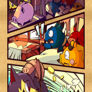 こうして3匹のこぶた貯金箱は、コインを拾い集めながらオオカミたちを追いかけるのでした・・・。