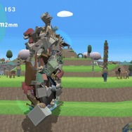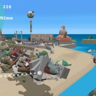 『塊魂 ノ・ビ~タ』は、高層ビルを根こそぎ抜き取ったり、たくさんのものをゴッソリまとめて巻き込んだりするシリーズの心地よさはそのままに、指の動きに合わせて、玉の形を思い通りに変形できるように進化。これにより、路地裏も、大草原も、自在に巻き込み放題となりました。