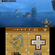 3DSならではの操作面では、スライドパッドや各種ボタンによるアクション操作に加え、下画面のタッチスクリーンを活用した操作が追加されています。さらにカスタマイズを行うことで自分のスタイルに合わせた使い方をすることが可能となっています。中でも、「ターゲットカメラ」パネル機能は、タッチしてON状態にしておくと、Lボタンで大型モンスターの方にカメラ(視点)が向くようになる機能となっており、これでモンスターを見失うことも少なくなるハズです。特に水中狩猟での立ち回りでもモンスターを捉えるのに便利な機能でしょう。このように便利な機能を備えたパネルがたくさん存在しているので、初めてモンハンシリーズをプレイする人にも、大いに役立つでしょう。