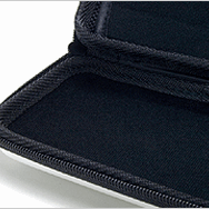 ポーチの内側には、内部でのスリキズを防止する仕切りパネルを設けたり、本体を出し入れする際のファスナーキズを防止する縫製など、ゲーム機を守るためのな工夫が随所に凝らされています。