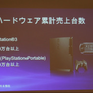 ハウス氏は冒頭でプレイステーションビジネスの現状について振り返り、PS3は5550万台、PSPは7310万台を超え現在も好調に推移していると述べました。特にPS3は欧米で値下げを実施、その後は昨年比12%増と伸びているとのこと。両機ともコストダウンを進め更なる普及を目指すとしました。