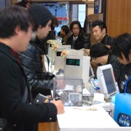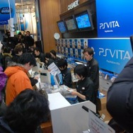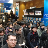 カウントダウンイベントが終了すると、粛々と購入者の行列が進んでいきました。行列の先頭部で、午前12時ごろから店頭で並んでいたという男性は、デモ機を見て有機ELディスプレイの美しさに心を引かれたとコメント。もっとも、PS VITAはゲーム機なので、まずはゲームを楽しみたいとWI-FIモデルを選択していました。同時購入タイトルは『真・三國無双NEXT』で、「シリーズのファンだし、ニンテンドー3DS版の『真・三國無双VS』がおもしろかったので、今回も楽しみです」とコメントしました。