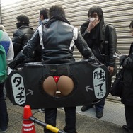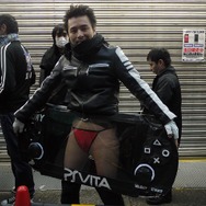 今回、披露した格好は下半身がPSVitaとなったスタイル。画面には何やら怪しいものが映されております。更に、後姿にも注目すると「触ってね、タッチ!」といったPSVitaの背面タッチを我が身で表現しています。