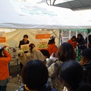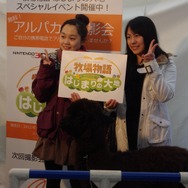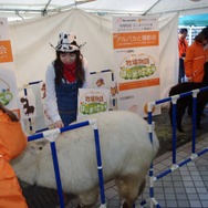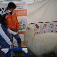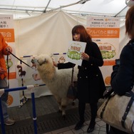 那須アルパカ牧場よりやってきたのは、ふーくん(白いアルパカ)とクーピーちゃん(茶黒のアルパカ)。イベントではどちらかのアルパカと一緒に記念写真が撮影できるというもので、1日数回行われました。見ての通り、とても可愛らしい姿をしていて、女性を中心に多くの方が記念写真を撮影していました。