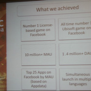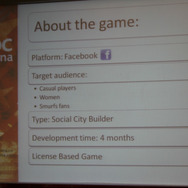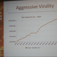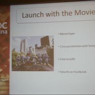 『The Smurfs & Co』は大人気の「The Smurfs」を題材とした街づくり(City Building)ゲームで、映画公開に合わせてフェイスブックでリリースされ、月間ユニークユーザー1000万、日間アクティブユーザー140万人を獲得。全体ランキングでも25位以内に入るという健闘を見せました。IPモノの中でも異例な成功となっています。