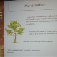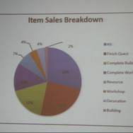 マネタイズ面ではプレミアムポイントを販売し、行動力を回復するアイテムやプレミアムな建物の販売、建物をすぐに完成させたり、クエストを完了させるアイテムを購入させる仕組みです。販売を見ると、建物やデコレーションの販売は極僅かで、全体の75%以上が建物の完成を早めたり、クエストを完了するアイテムに消費されていたそうです。